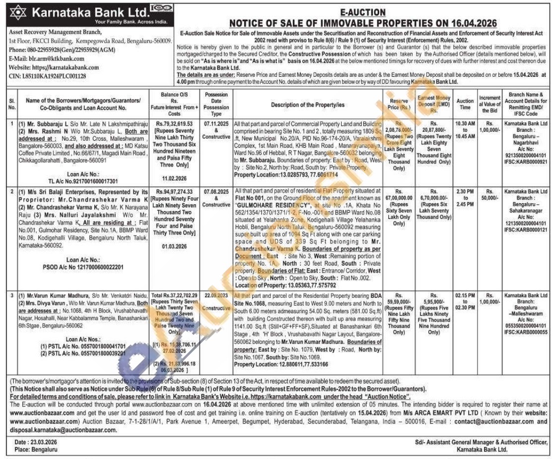 Contact Phone: 080-22955928(Gen)/22955929(AGM)