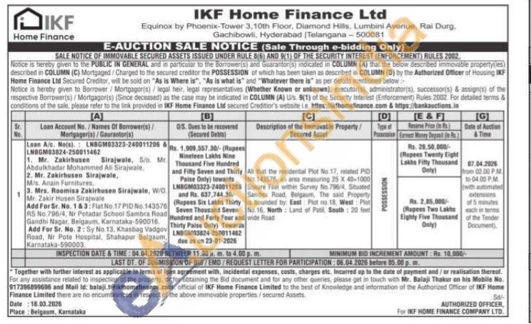 All that the residential Plot No. 17, neated PID No. 143576. an area measuring 25 X 40-1000 Square Feet within Survey No. 796/4, Situated Sambra Road, Belgaum, The said Property is bounded by: East Plot no 15, West Phot No. 16. North Land of Patil, South 20 feet Road