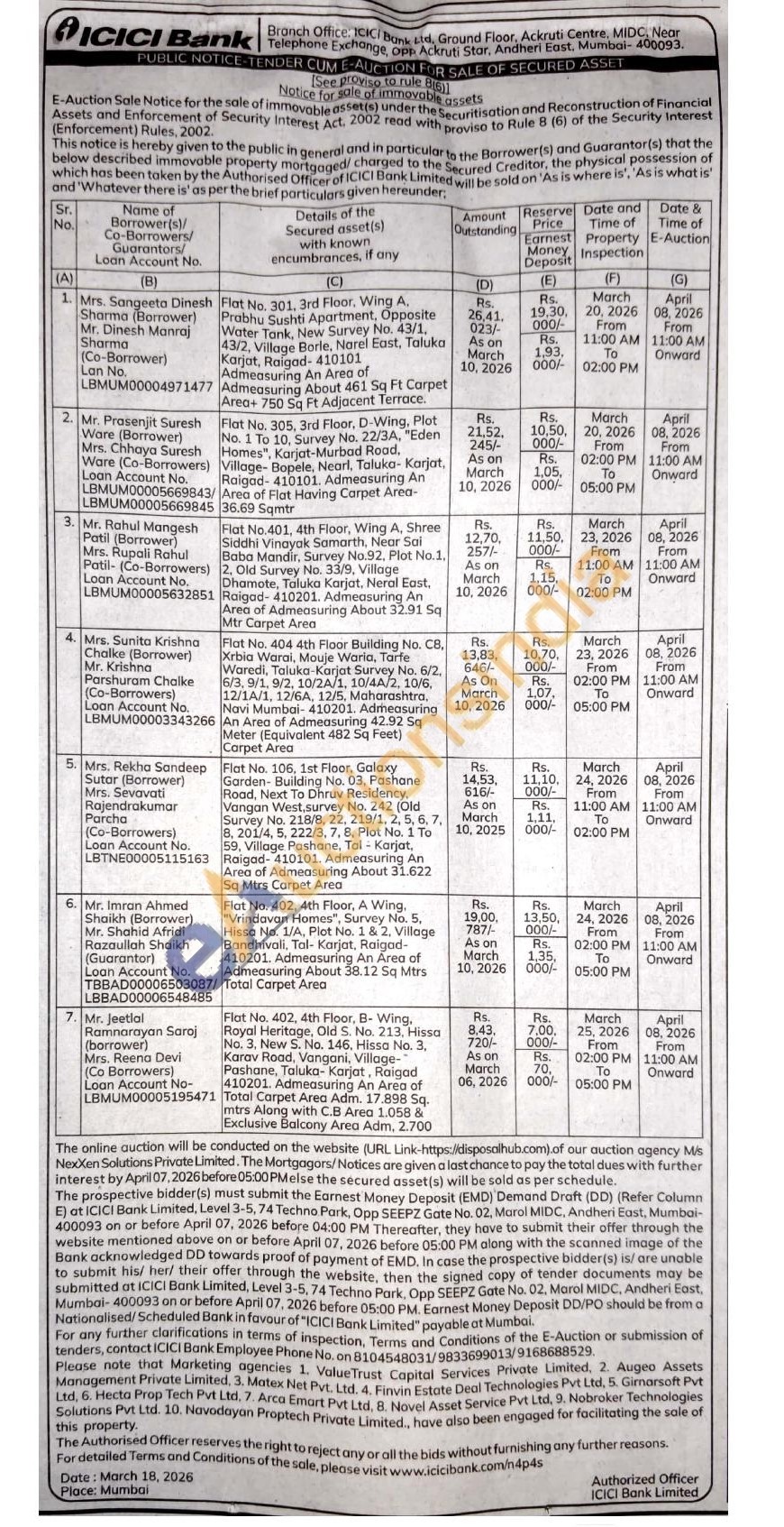 Flat No. 402, 4th Floor, A Wing, "Vrindavan Homes", Survey No. 5, Hissa No. 1/A, Plot No. 1 & 2, Village Bandhivali, Tal- Karjat, Raigad-410201. Admeasuring An Area of Admeasuring About 38.12 Sq Mtrs Total Carpet Area