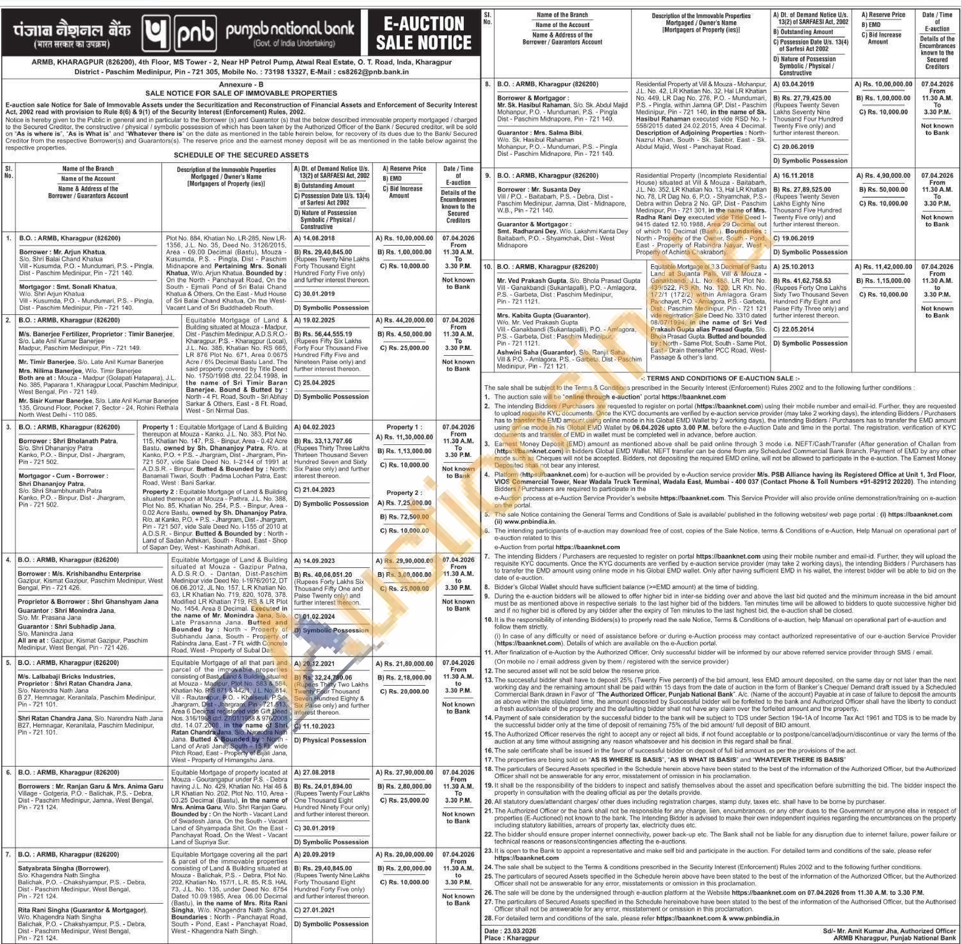 Residential Property at Vill & Mouza - Mohanpur, J.L. No. 42, LR Khatian No. 32, Hal LR Khatian No. 449, LR Dag No. 276, P.O. Mundumari, P.S.Pingla, within Jamna GP, Dist - Paschim Medinipur, Pin-721 140, in the name of Sk. Hasibul Rahaman executed vide RSD No. I-558/2015 dated 24.02.2015, Area 4 Decimal. Description of Adjoining Properties: North-Nazrul Khan, South Sk. Sabbir, East - Sk. Abdul Majid, West - Panchayat Road.