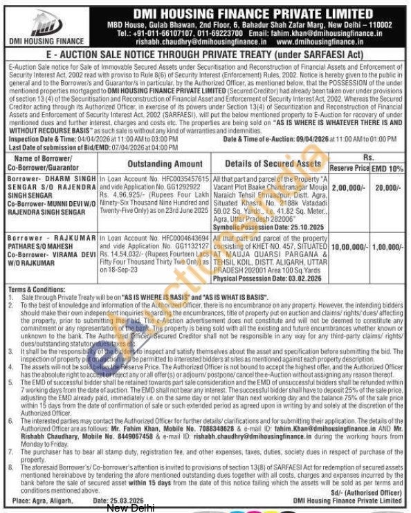 All that part and parcel of the Property "A Vacant Plot Baake Chandranagar Mouja Naraich Tehsil Etmaadpur, Distt. Agra, Situated Khasra No. 2188k Vatadadi 50.02 Sq. Yards ie. 41.82 Sq. Meter.. Agra. Uttar Pradesh 282006 Symbolic Possession Date: 25.10.2025