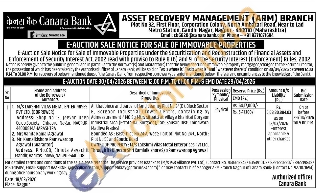 All that piece and parcel of land bearing Plot No 24(B), Block Sector-B, Borgaon Industrial Growth Centre, containing by Admeasurement 4140 Sq Mtrs situatd at village khairitai Borgaon Industrial Area (Estate-IGC Borgaon), Tah: Sausar, Dist: Chindwara, Madhya Pradesh.