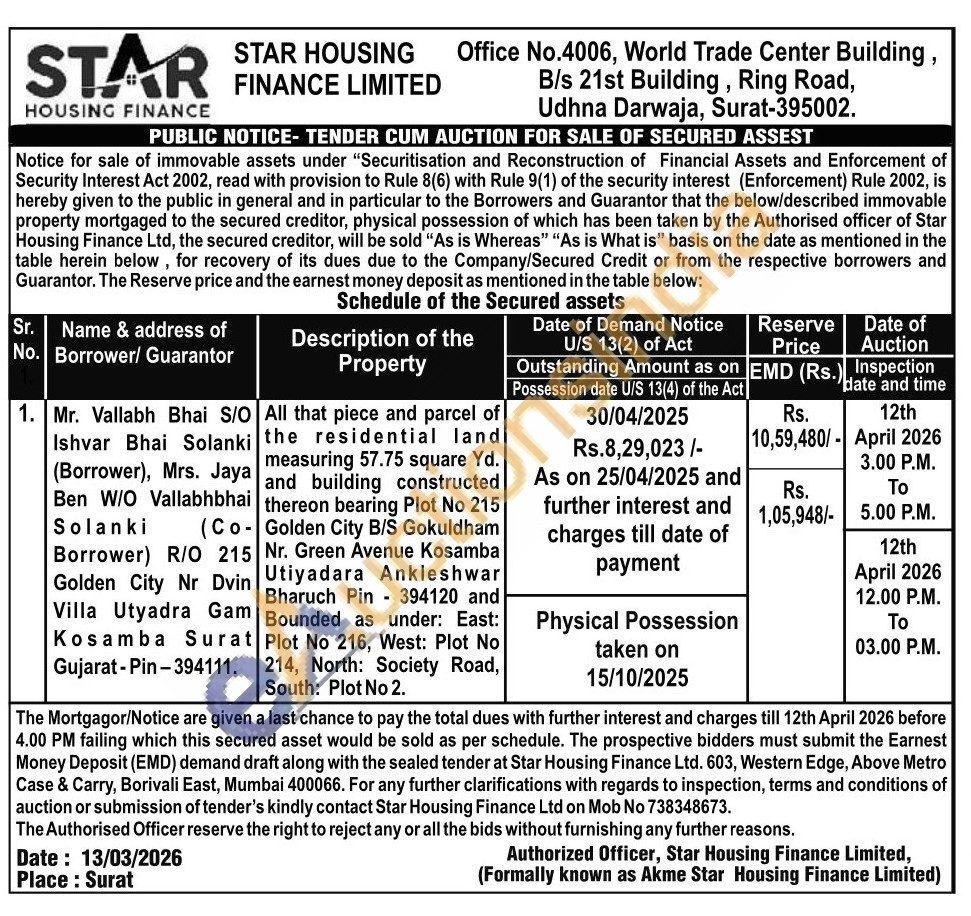 contact Star Housing Finance Ltd on Mob No 738348673.