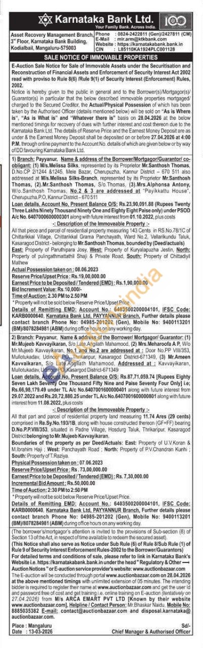 All that part and parcel of residential property land measuring 11.74 Ares (29 cents) comprised in Re.Sy.No.193/1B, along with house constructed thereon (GF+FF) bearing D.No.P.P.VIII/353, situated in Padne Village, Hosdurg Taluk, Thrikaripur, Kasaragod District belonging to Mr. Mujeeb Kavvayikaran. Boundaries of the property as per Deed/Actuals: East: Property of U.V.Koran & M.Ibrahim Haji: West: Panchayath Road North: Property of P.V.Chandran Kunhi: South: Property of T. Raziya.
