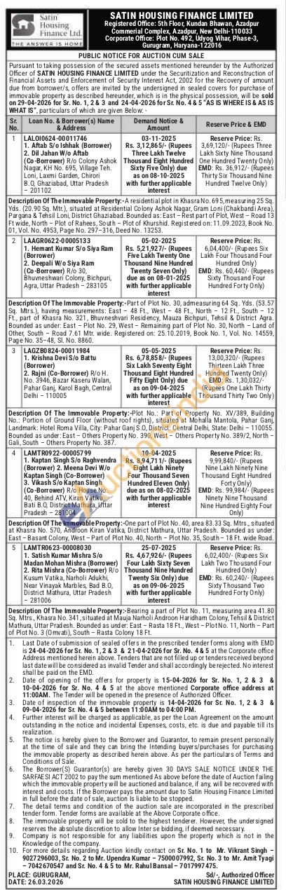 Description Of The Immovable Property:-Part of Plot No. 30, admeasuring 64 Sq. Yds. (53.57 Sq. Mtrs.), having measurements: East 48 Ft., West 48 Ft., North 12 F1., South 12 Ft., part of Khasra No. 321, Bhuvneshvari Residency, Mauza Bichpuri, Tehsil & District Agra. Bounded as under: East Plot No. 29, West Remaining part of Plot No. 30, North Land of Other, South Road 7.61 Mtr. wide. Registered on. 25.10.2019, Book No. 1, Vol. No. 14559, Page No. 35-48, Sl. No. 8860