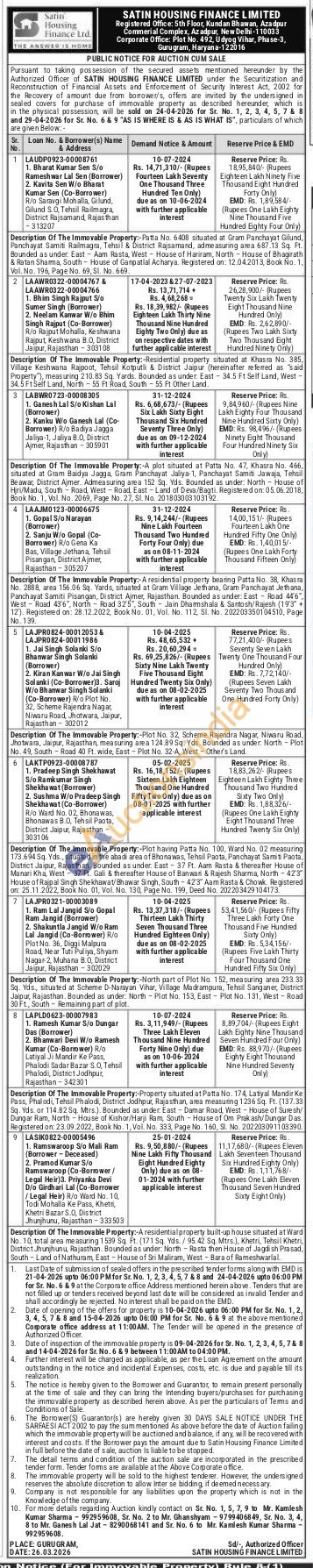 Description Of The Immovable Property:-A residential property bearing Patta No. 38, Khasra No. 2888, area 156.06 Sq. Yards, situated at Gram Village Jethana, Gram Panchayat Jethana, Panchayat Samiti Pisangan, District Ajmer, Rajasthan. Bounded as under: East Road 446", West Road 436", North Road 325", South Jain Dharmshala & Santosh/Rajesh (193+ 12). Registered on: 28.12.2022, Book No. 01, Vol. No. 112, Sl. No. 202203350104510, Page No. 139