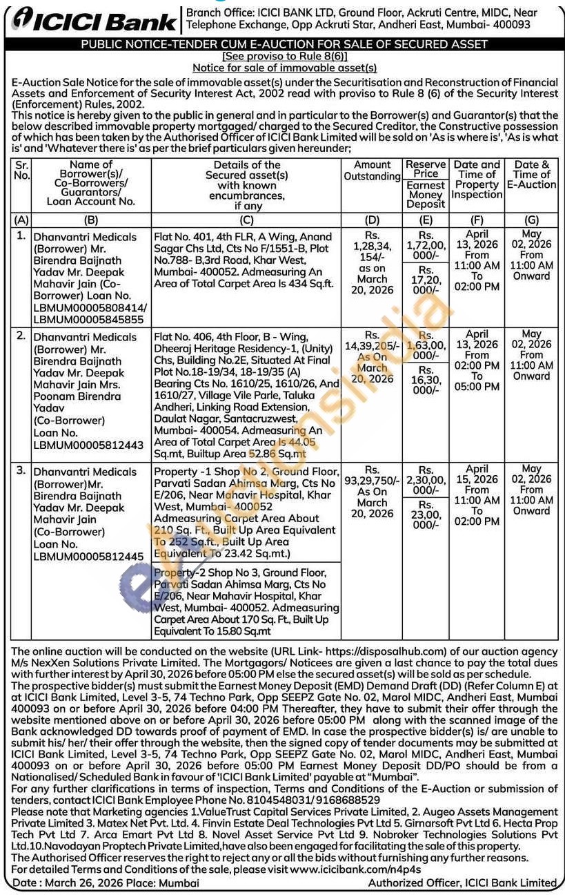 Property-2 Shop No 3, Ground Floor, Parvati Sadan Ahimsa Marg, Cts No E/206, Near Mahavir Hospital, Khar West, Mumbai- 400052. Admeasuring Carpet Area About 170 Sq. Ft, Built Up Equivalent To 15.80 Sq.mt