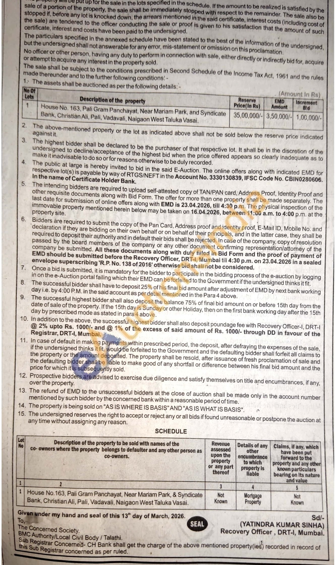 House No. 163, Pali Gram Panchayat, Near Mariam Park, and Syndicate Bank, Christian Ali, Pali, Vadavali, Naigaon West Taluka Vasai