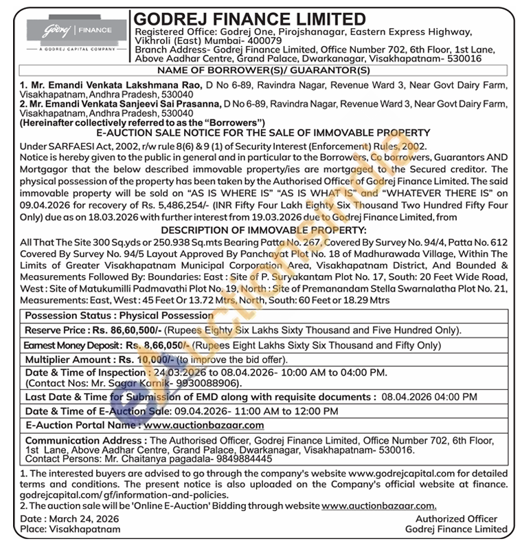 All That The Site 300 Sq.yds or 250.938 Sq.mts Bearing Patta No. 267, Covered By Survey No. 94/4, Patta No. 612 Covered By Survey No. 94/5 Layout Approved By Panchayat Plot No. 18 of Madhurawada Village, Within The Limits of Greater Visakhapatnam Municipal Corporation Area, Visakhapatnam District, And Bounded & Measurements Followed By: Boundaries: East: Site of P. Suryakantam Plot No. 17, South: 20 Feet Wide Road, West: Site of Matukumilli Padmavathi Plot No. 19, North: Site of Premanandam Stella Swarnalatha Plot No. 21, Measurements: East, West: 45 Feet Or 13.72 Mtrs, North, South: 60 Feet or 18.29 Mtrs