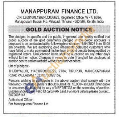 Manappuram Finance Ltd Gold Auctions Auction in Thrissur