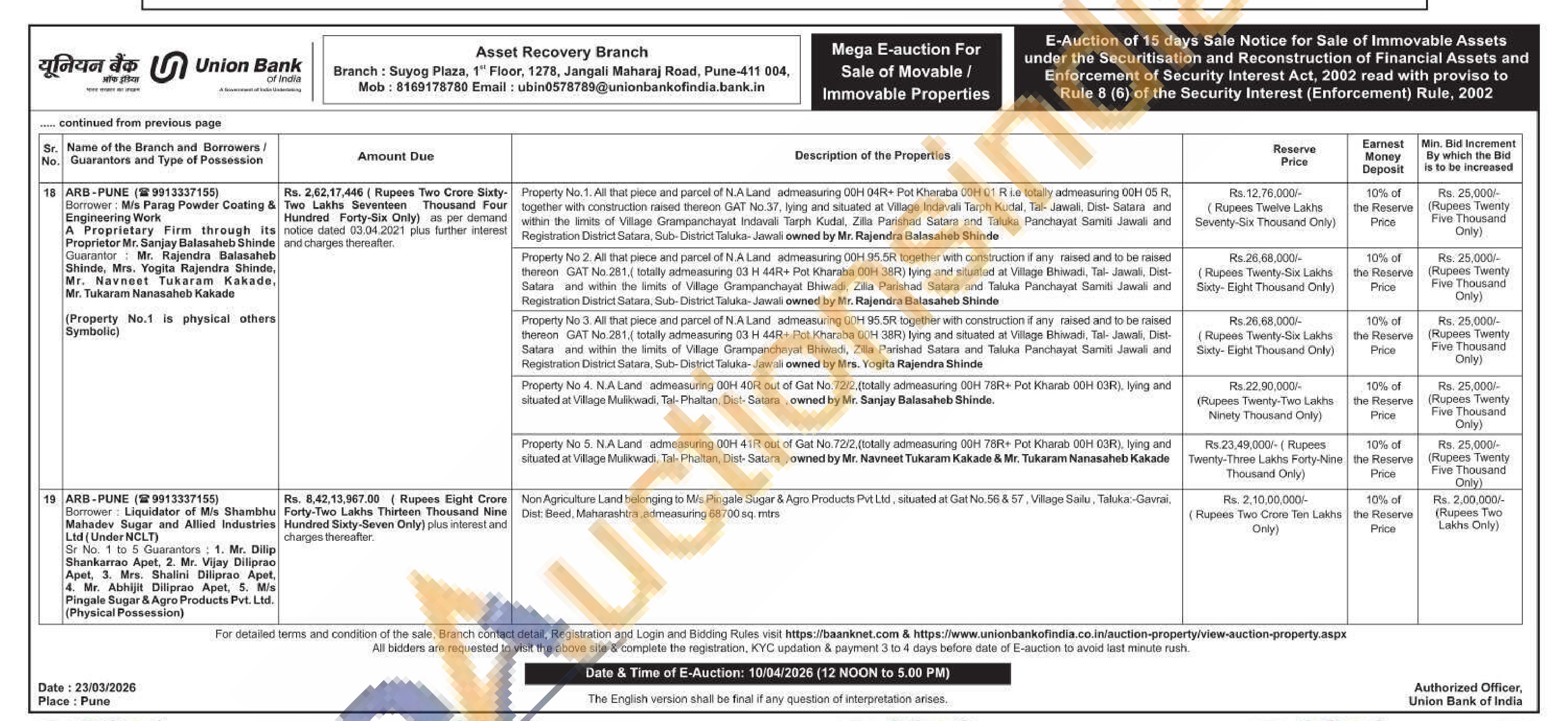 All that piece and parcel of N.A Land admeasuring 00H 95.5R together with construction if any raised and to be raised thereon GAT No.281, (totally admeasuring 03 H 44R+ Pot Kharaba 00H 38R) Iying and situated at Village Bhiwadi, Tal- Jawali, Dist-Satara and within the limits of Village Grampanchayat Bhiwadi, Zilla Parishad Satara and Taluka Panchayat Samiti Jawali and Registration District Satara, Sub-District Taluka-Jawali owned by Mrs. Yogita Rajendra Shinde