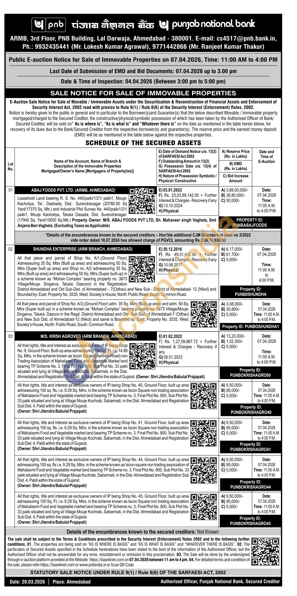 All that piece and parcel of Shop No. A/3, (Ground Floor) adm. 35 Sq. Mtrs (Built up area) and adm. 50 Sq. Mtrs (Super built up) in a scheme known as "Mohan Complex" bearing property no. 3873 Village/Mouje: Singarva, Taluka: Dascroi in the Regd. District Ahmedabad and Old Sub Dist. of Ahmedabad-7 (Odhav) and New Sub Dist. of Ahmedabad-12 (Nikol) and same is Bounded by: East: Property No. 3535, West: Society's House, North: Public Road, South: Common Road.