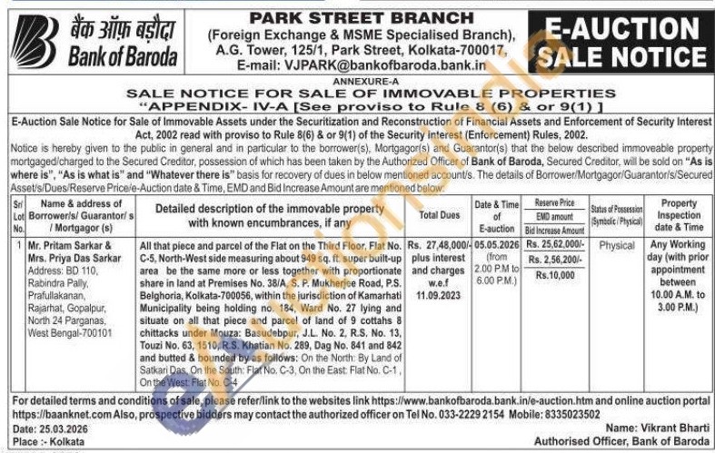 contact the authorized officer on Tel No. 033-2229 2154 Mobile: 8335023502