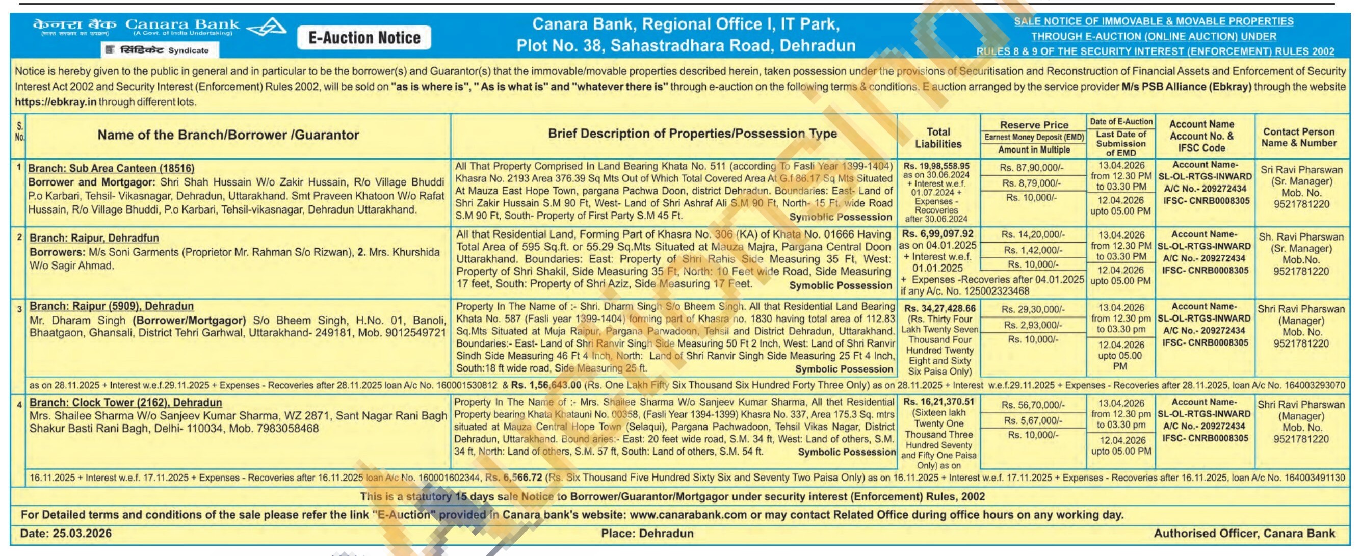 4) Property In The Name of Mrs. Shailee Sharma W/o Sanjeev Kumar Sharma, All thet Residential Property bearing Khata Khatauni No. 00358, (Fasli Year 1394-1399) Khasra No. 337, Area 175.3 Sq. mtrs situated at Mauza Central Hope Town (Selaqui), Pargana Pachwadoon, Tehsil Vikas Nagar, District Dehradun, Uttarakhand. Bound aries:- East: 20 feet wide road, S.M. 34 ft, West: Land of others, S.M. 34 ft, North: Land of others, S.M. 57 ft, South: Land of others, S.M. 54 ft.