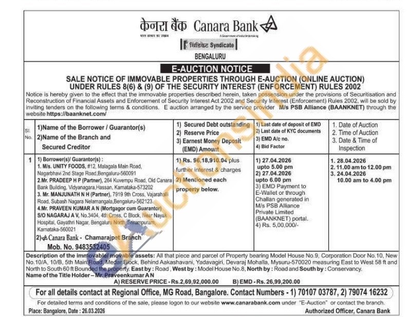 All that piece and parcel of Property bearing Model House No.9, Corporation Door No. 10, New No. 10/A, 10/B, 5th Main Road, Medar Block, Behind Aakashavani, Yadavagiri, Devaraj Mohalla, Mysuru-570020 measuring East to West 58 ft and North to South 60 ft Bounded the property. East by: Road, West by: Model House No.8, North by: Road and South by: Conservancy. Name of the Title Holder-Mr. Praveenkumar AN