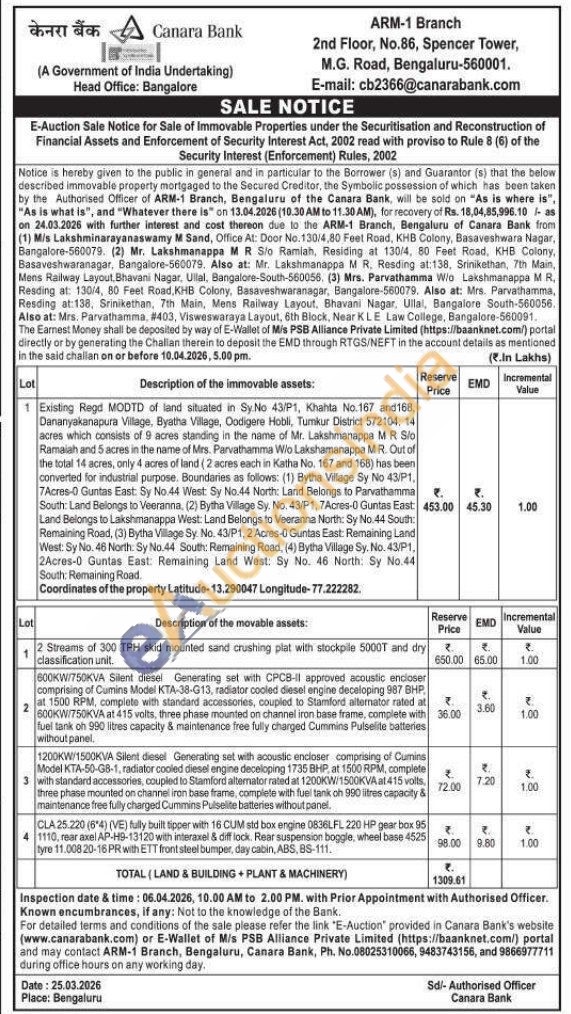 1 Existing Regd MODTD of land situated in Sy No 43/P1, Khahta No.167 and 168, Dananyakanapura Village, Byatha Village, Oodigere Hobli, Tumikur District 572104. 14 acres which consists of 9 acres standing in the name of Mr. Lakshmanappa MR Slo Ramalah and 5 acres in the name of Mrs. Parvathamma W/o Lakshamanappa MR. Out of the total 14 acres, only 4 acres of land (2 acres each in Katha No. 167 and 168) has been converted for industrial purpose. Boundaries as follows: (1) Bytha Village Sy No 43/P1, 7Acres-0 Guntas East: Sy No 44 West: Sy No.44 North: Land Belongs to Parvathamma South: Land Belongs to Veeranna, (2) Bytha Village Sy. No. 43/P1, 7Acres-0 Guntas East: Land Belongs to Lakshmanappa West: Land Belongs to Veeranna North: Sy No.44 South: Remaining Road, (3) Bytha Village Sy. No. 43/P1, 2 Acres-0 Guntas East: Remaining Land West: Sy No. 46 North. Sy No.44 South: Remaining Road, (4) Bytha Village Sy. No. 43/P1, 2Acres-0 Guntas East: Remaining Land West: Sy No. 46 North: Sy No.44 South: Remaining Road.