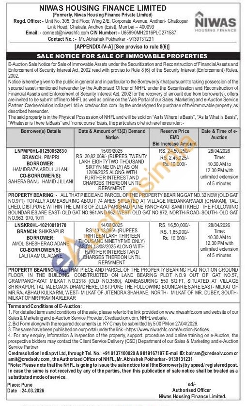 Authorized Officer Mr. Abhishek Pokharkar-Contact No : 9139131231