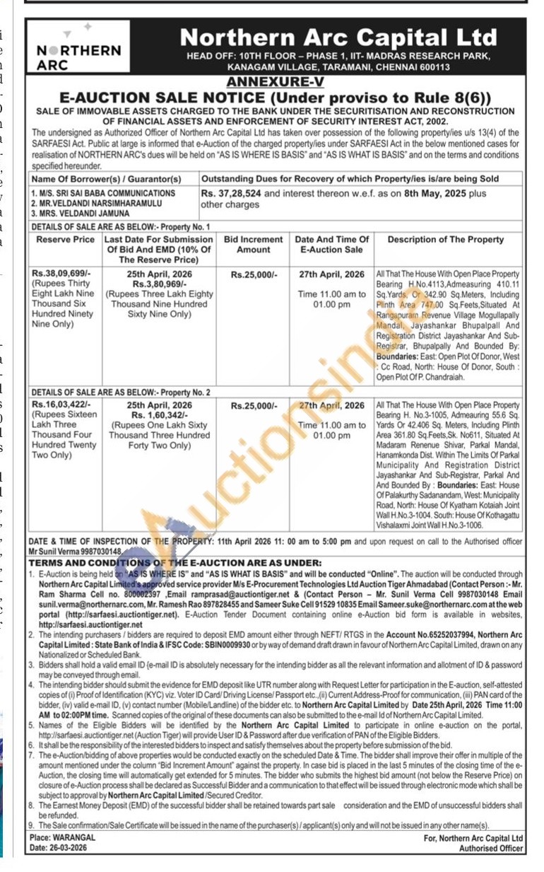 All That The House With Open Place Property. Bearing H. No.3-1005, Admeauring 556 Sq. Yards Or 42.406 Sq. Meters, Including Plinth Area 361.80 Sq Feets, Sk. No611, Situated At Madaram Renenue Shivar, Parkal Mandal, Hanamkonda Dist. Within The Limits Of Parkal Municipality And Registration District Jayashankar And Sub-Registrar. Parkal And And Bounded By: Boundaries: East House Of Palakurthy Sadanandam, West: Municipality Road, North: House Of Kyatham Kotaiah Joint Wall H.No.3-1004. South: House Of Kothagattu Vishalaxmi Joint Wall H.No.3-1006.