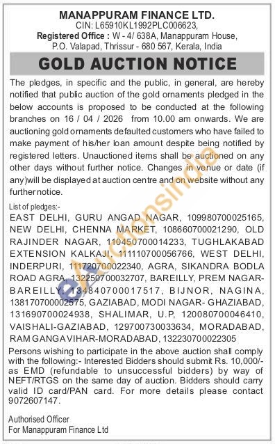 Manappuram Finance Ltd Gold Auctions Auction in Thrissur
