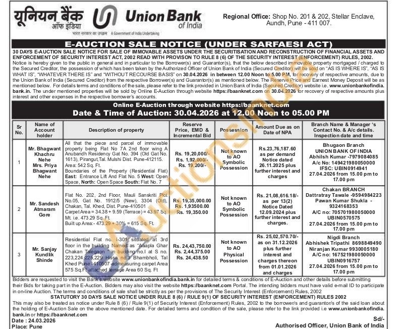 3 . Residential Flat no. 1-301 situated at 3rd floor in the building Named as "Aaapla Ghar Chakan Talegaon in building no.l at S no. 223,224,225,229 Hissa no.3 Bhambholi, Tal Khed Pune-410507 admeasuring carpet Area 575 Sq.Ft attached terrace Area 60 Sq.ft