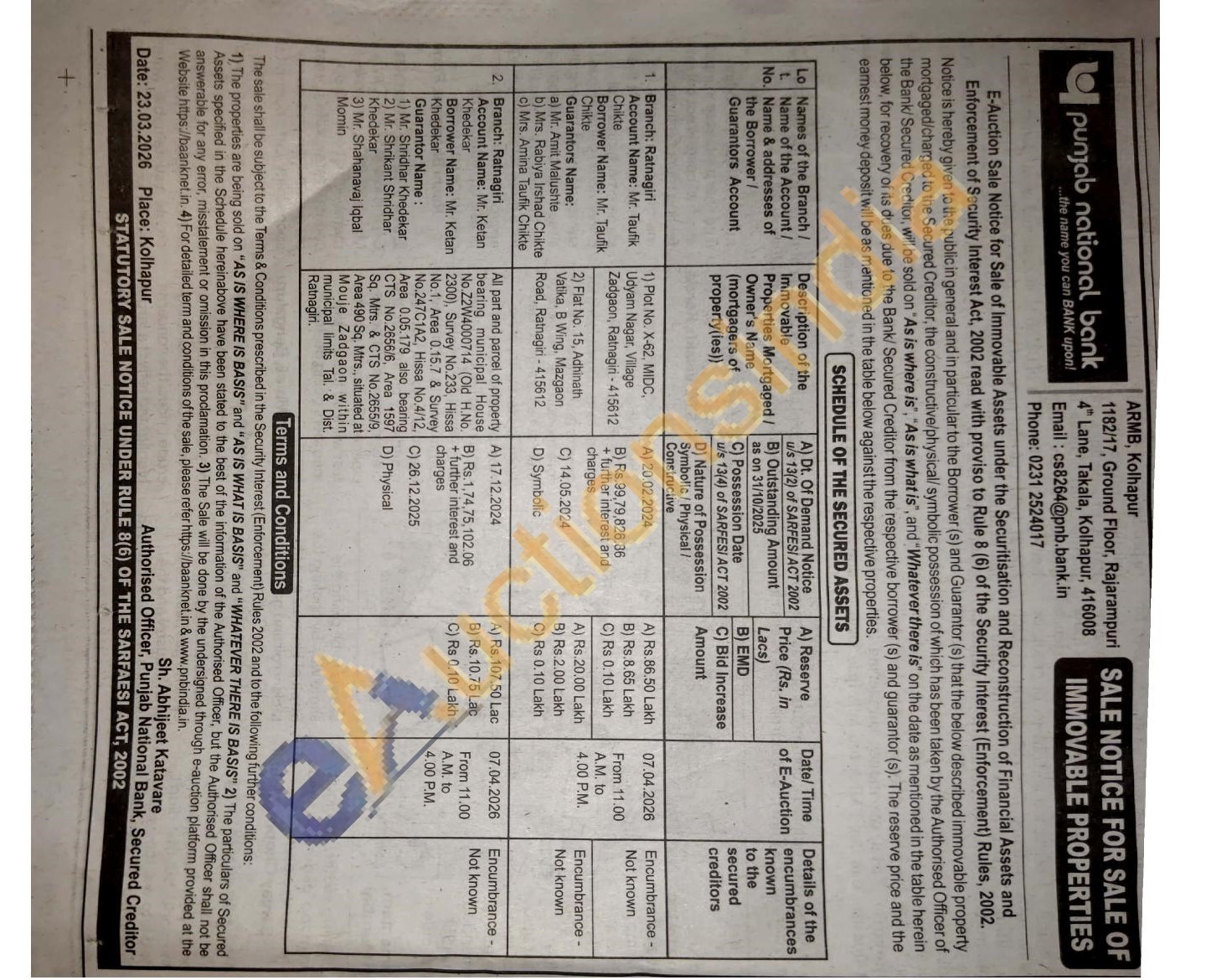 All part and parcel of property bearing municipal House No.Z2W4000714 (Old H.No. 2300), Survey No.233, Hissa No.1, Area 0.15.7 & Survey No.247C1A2, Hissa No.4/12. Area 0.05.179 also bearing CTS No.2656/6, Area 1597 Sq. Mirs. & CTS No.2655/9, Area 490 Sq. Mtrs., situated at Mouje Zadgaon within municipal limits Tal. & Dist. Ratnagiri.