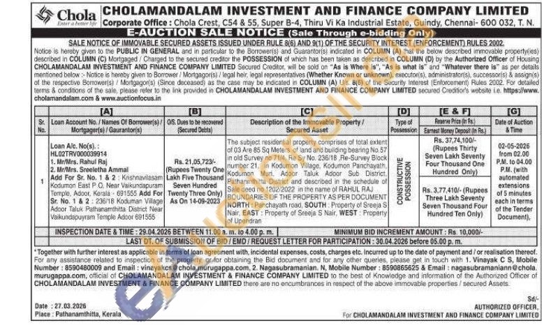Vinayak C S 8590480009 Email: vinayakcs@chola.murugappa.com/ Nagasubramanian. N : 8590865625