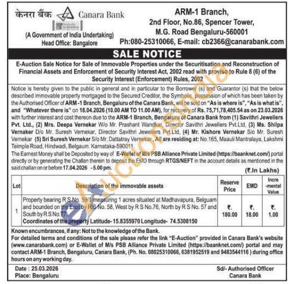 Property bearing RS No. 59/1 measuring 1 acres situated at Madhavapura, Belguam and bounded on the East by RS No. 58, West by R S No.76, North by R S No. 57 and South by RS No.77.