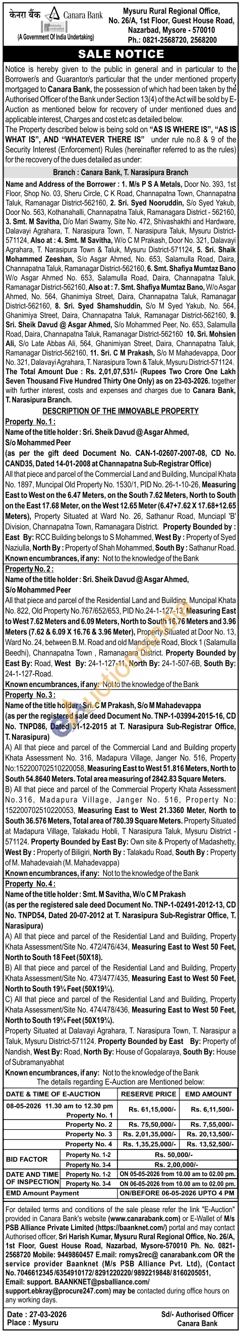 Property Situated at Dalavayi Agrahara, T. Narasipura Town, T. Narasipur a Taluk, Mysuru District-571124. Property Bounded by East By: Property of Nandish, West By: Road, North By: House of Gopalaraya, South By: House of Subramanyabhat