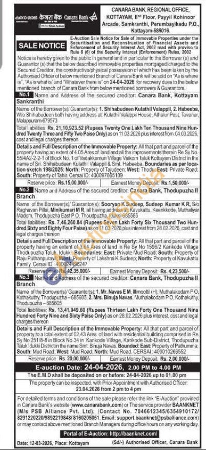 3) All that part and parcel of property to a total extent of 02.43 Ares of land with residential building comprised in Re Sy No 251/8-8 in Block No.34 in Karikode Village, Karikode Sub-District, Thodupuzha Taluk Idukki District in the name Smt. Binuja Navas Bounded: East: Property of Pathumma, South: Mud Road, West: Mud Road, North: Mud Road, CERSAI: 400010266552
