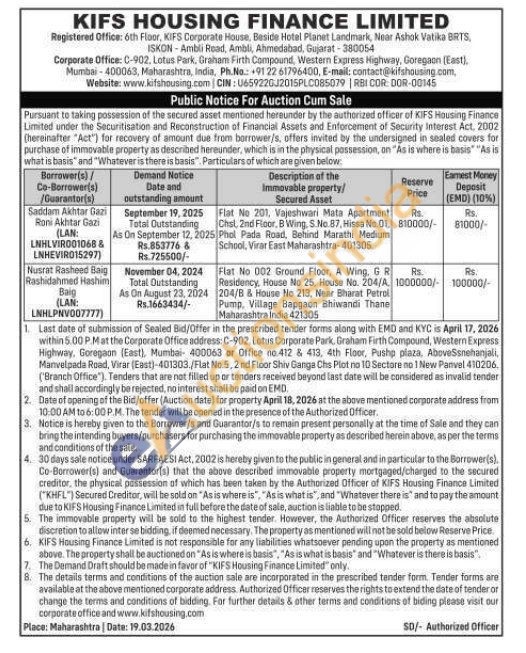 Flat No 201, Vajeshwari Mata Apartment Chsl, 2nd Floor, B Wing, S.No. 87, Hissa No.01 Phol Pada Road, Behind Marathi Medium School, Virar East Maharashtra-401305
