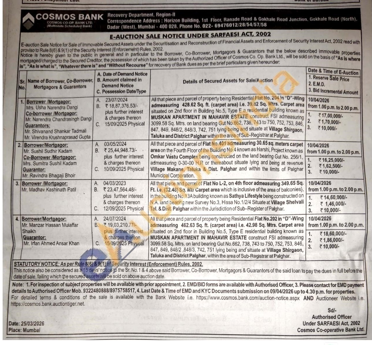 All that piece and parcel of Flat No L-2, on 4th floor admeasuring 349.65 Sq. Ft. i.e. (32.48) Sq. Mtr Carpet area which is inclusive of the area of balconies), in the building No. 13A building known as Sathya Lifestyle being constructed on N.A. land bearing new Survey No.3, Hissa No. 1/2/4 Situate at Village Shelvali Tal. & Dist. Palghar within the Jurisdiction of Sub-Register of Palghar