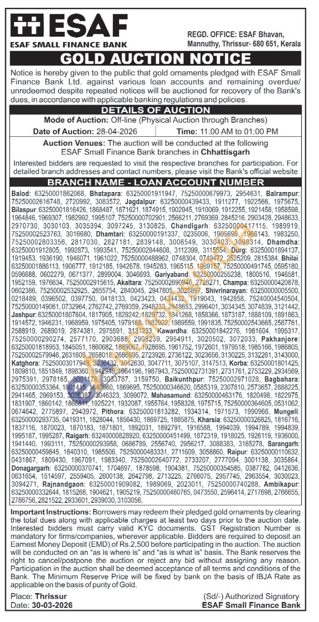 ESAF SMALL FINANCE BANK Gold Auctions Auction in Bilaspur