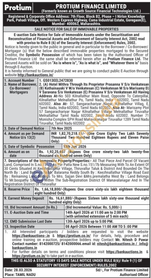 All That Piece And Parcel Of Vacant Land, Comprised In S.no. 151/7 As Per Patta New S.no.151/7b Measuring With To An Extent Of 30 Cents Situated At Keezhnallathur Village, Thiruvallur Taluk & District And Bounded On The North By: Land Belongs To Mr. Balarama Reddy South By: Keezhnallathur Village Road East By: Remaining Land Belongs To Mrs. Sajjan Devi &Mrs.premalatha West By: Land Belongs To Mr.boopathy Situated Within The Sub-Registration District Of Manavalanagar And In The Registration District Of Thiruvallur