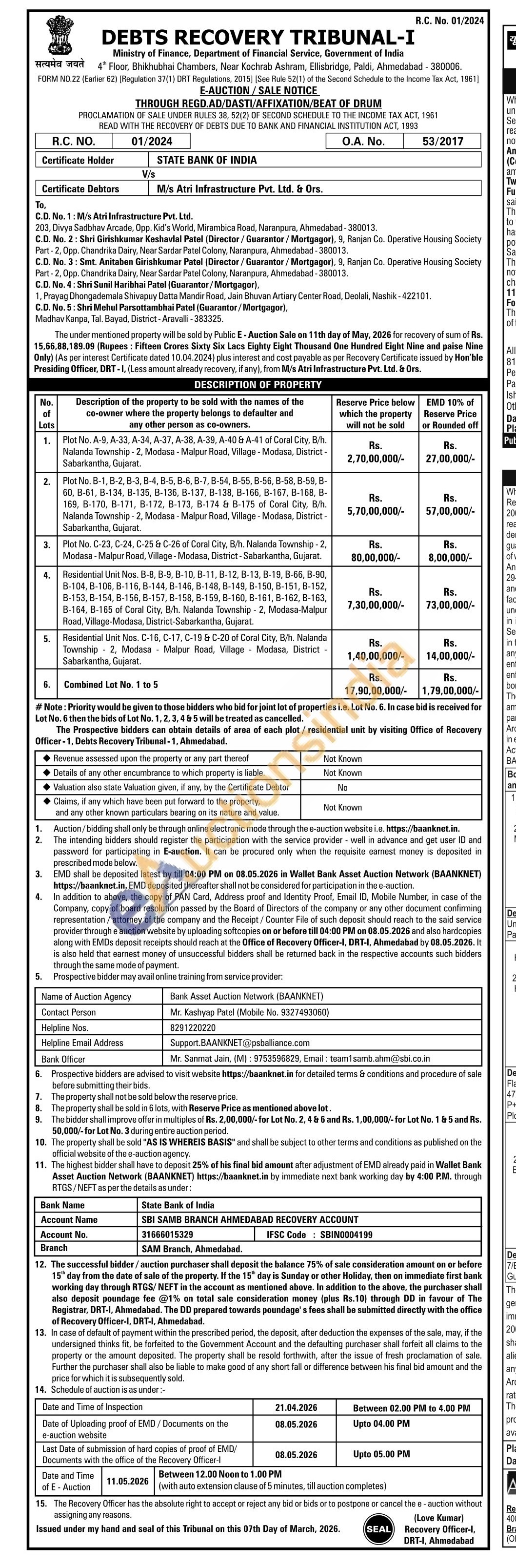 Residential Unit Nos. C-16, C-17, C-19 & C-20 of Coral City, B/h. Nalanda Township 2, Modasa Malpur Road, Village Modasa, District Sabarkantha, Gujarat. -