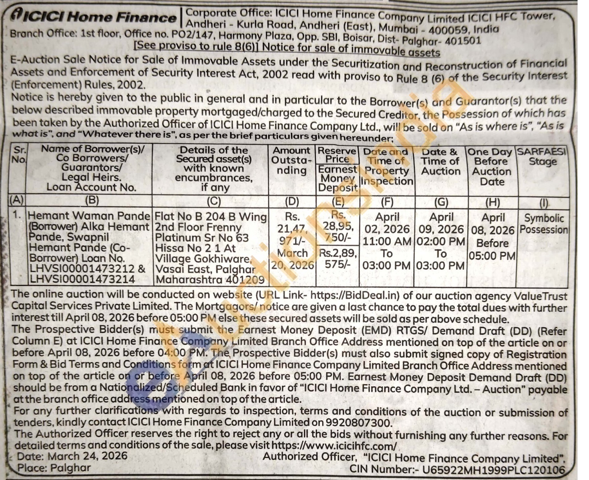 Flat No B 204 B Wing 2nd Floor Frenny Platinum Sr No 63 Hissa No 2 1 At Village Gokhiware, Vasai East, Palghar Maharashtra 401209