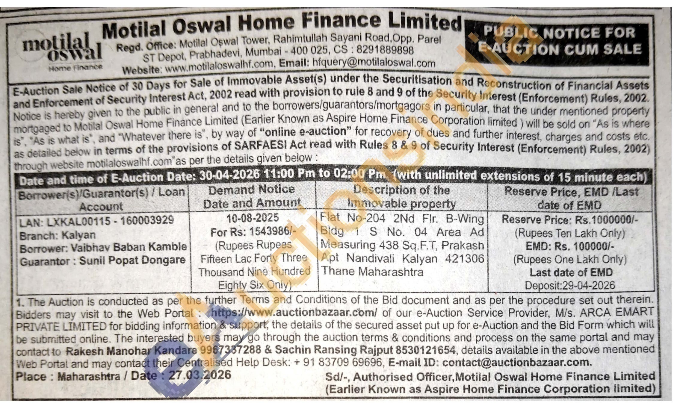 Flat No-204 2Nd Flr. B-Wing Bidg 1 S No. 04 Area Ad Measuring 438 Sq. F.T, Prakash Apt Nandivali Kalyan 421306 Thane Maharashtra
