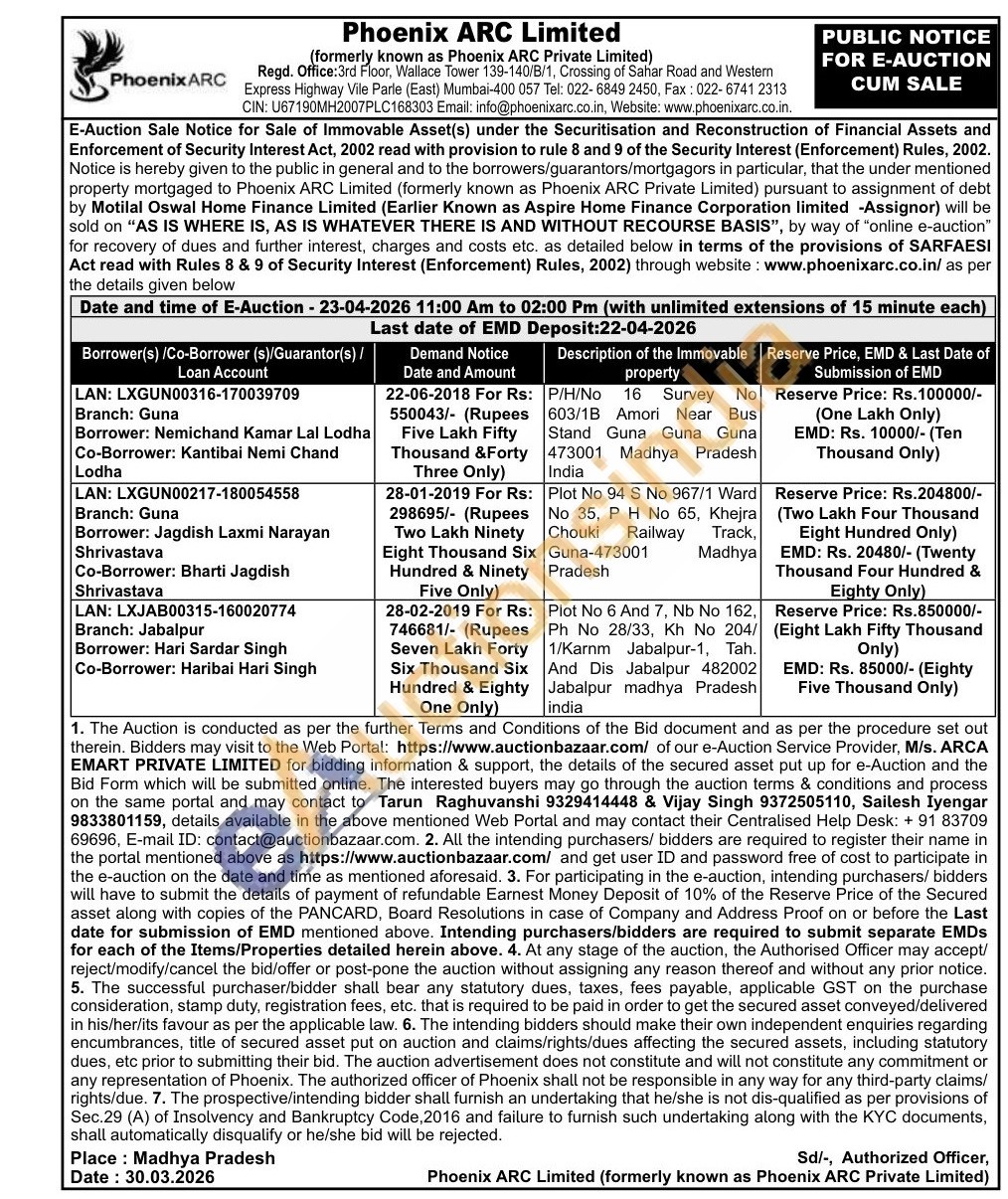 Plot No 94 S No 967/1 Ward No 35, P H No 65, Khejra Chouki Railway Track, Guna-473001 Pradesh Madhya