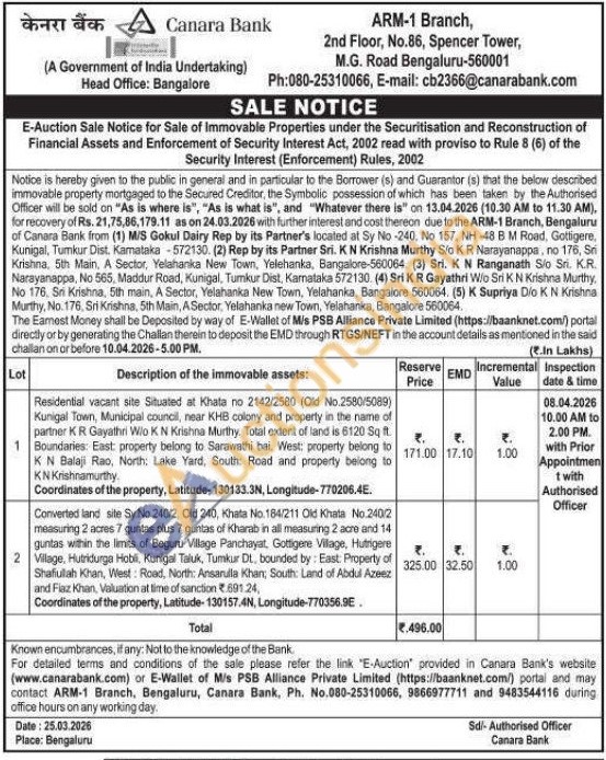 Residential vacant site Situated at Khata no 2142/2580 (Old No.2580/5089) Kunigal Town, Municipal council, near KHB colony and property in the name of partner KR Gayathri W/o K N Krishna Murthy. Total extent of land is 6120 Sq ft. Boundaries: East: property belong to Sarawathi bai, West: property belong to KN Balaji Rao, North: Lake Yard, South Road and property belong to KN Krishnamurthy.