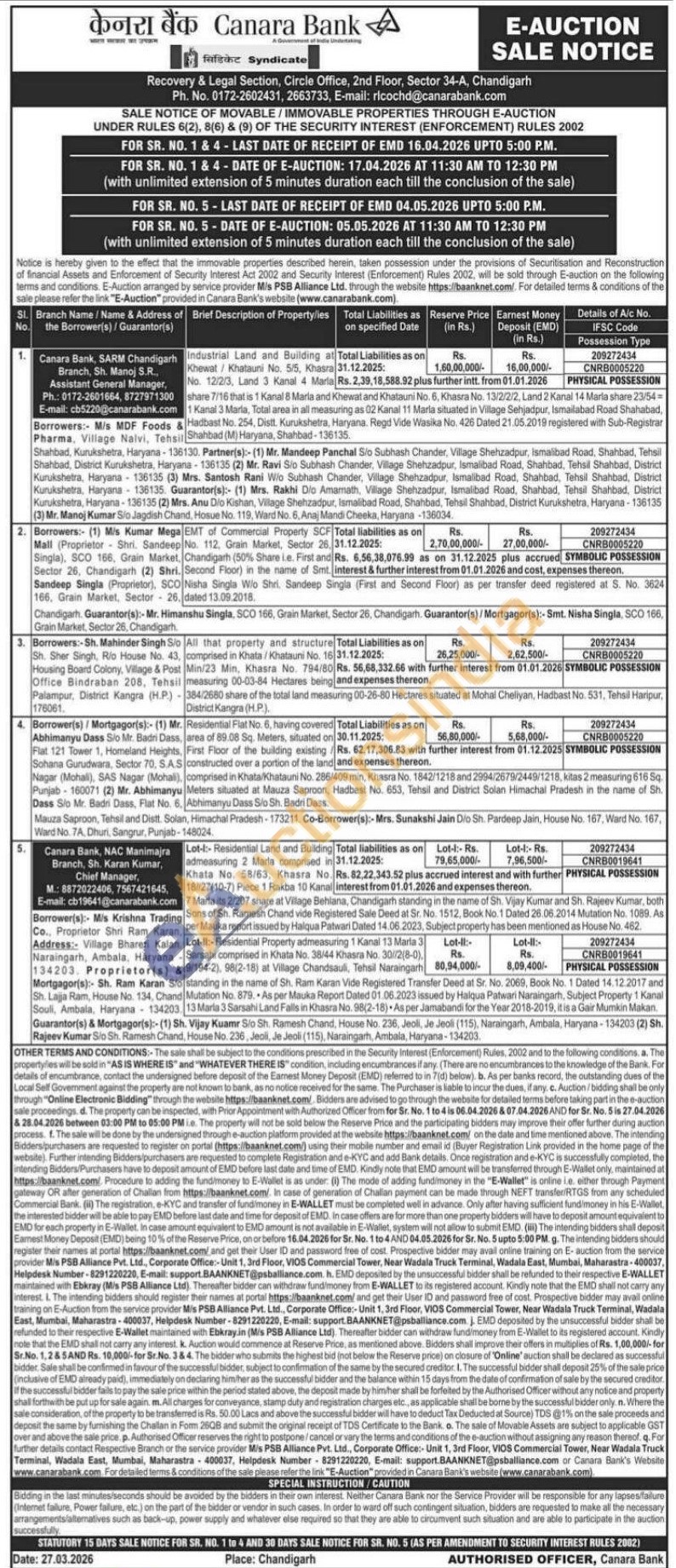 5 Lot-ll:- Residential Property admeasuring 1 Kanal 13 Maria 3 Haryana Sarsahi comprised in Khata No. 38/44 Khasra No. 30//2(8-0) 194-2), 98(2-18) at Village Chandsauli, Tehsil Naraingarh standing in the name of Sh. Ram Karan Vide Registered Transfer Deed at Sr. No. 2069, Book No. 1 Dated 14.12.2017 and Chand Mutation No. 879. As per Mauka Report Dated 01.06.2023 issued by Halqua Patwari Naraingarh, Subject Property 1 Kanal 134203. 13 Maria 3 Sarsahi Land Falls in Khasra No. 98(2-18) As per Jamabandi for the Year 2018-2019, it is a Gair Mumkin Makan