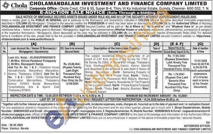 The subject residential property comprises of an extent of 3.57 Ares of land in Old Survey No 175/2 Re Survey No 258/4, in Manantheri Village, Thalassery Taluk, Koothuparambu Sub District, Kannur District and described in the schedule to sale deed in favour of Shimoj Boundaries North Remaining Property in Possession With Me & Private Road, South Thodu, East: Property In Possession With Abdulla, Shemeer. West: Remaining Property, Boundaries Of The Property As Per Location Sketch, North Private Road & Polapady Kalyani, South: Thodu, East: Abdulla, Shameer, West Polapady Kalyani