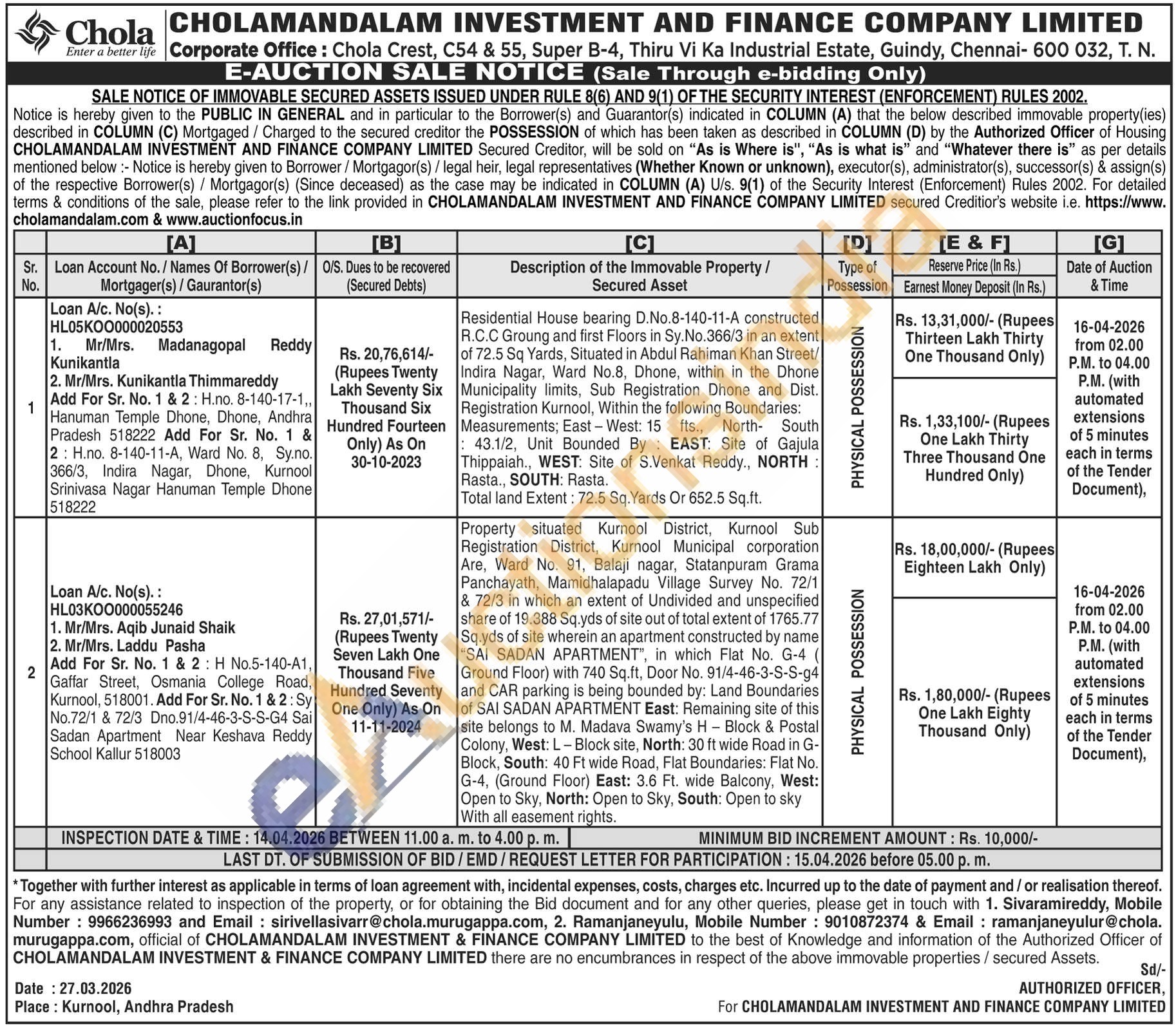 Residential House bearing D.No.8-140-11-A constructed R.C.C Groung and first Floors in Sy.No.366/3 in an extent of 72.5 Sq Yards, Situated in Abdul Rahiman Khan Street/Indira Nagar, Ward No.8, Dhone, within in the Dhone Municipality limits, Sub Registration Dhone and Dist. Registration Kurnool, Within the following Boundaries: Measurements; East-West: 15 fts., North South 43.1/2, Unit Bounded By EAST: Site of Gajula Thippaiah., WEST: Site of S.Venkat Reddy., NORTH Rasta., SOUTH: Rasta. Total land Extent: 72.5 Sq. Yards Or 652.5 Sq.ft
