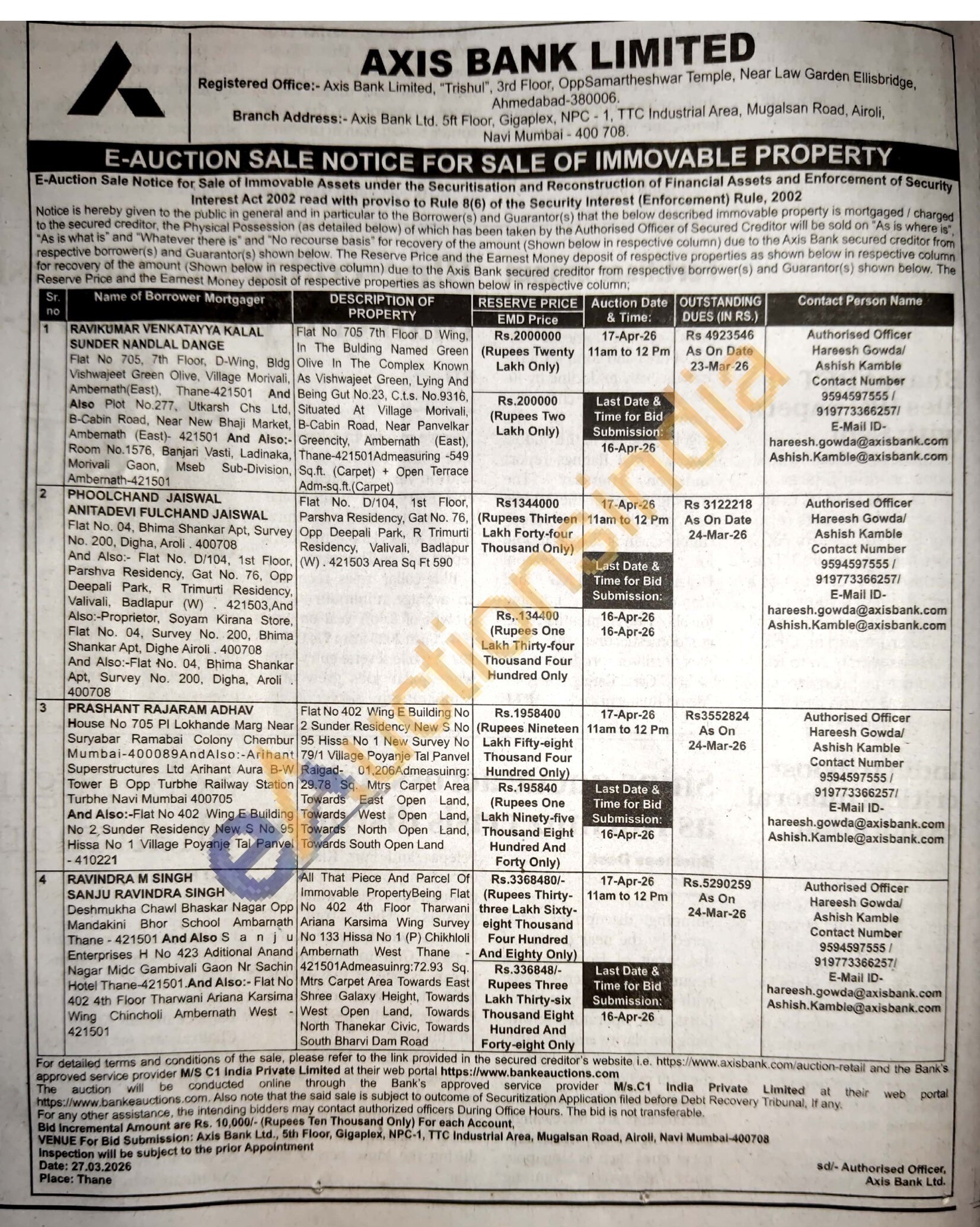 2. Flat No. D/104, 1st Floor, Parshva Residency, Gat No. 76, Opp Deepall Park, R. Trimurti Residency, Valivali, Badlapur (W). 421503 Area Sq Ft 590
