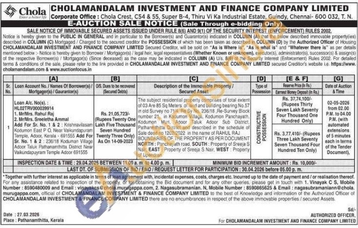The subject residential property comprises of total extent of 03 Are 85 Sq Meters of land and building bearing No.57 in old Survey no 71/4, Re Sy No. 236/18 Re-Survey Block number 21, in Kodumon Village, Kodumon Panchayath Kodumon Murni, Adoor Taluk Adoor Sub District, Pathanmthitta District and described in the schedule of Sale deed no 1202/2022 in the name of RAHUL RAJ BOUNDARIES OF THE PROPERTY AS PER DOCUMENT NORTH: Panchayath road, SOUTH: Property of Sreeja S Nair, EAST: Property of Sreeja S Nair, WEST Property of Upendran