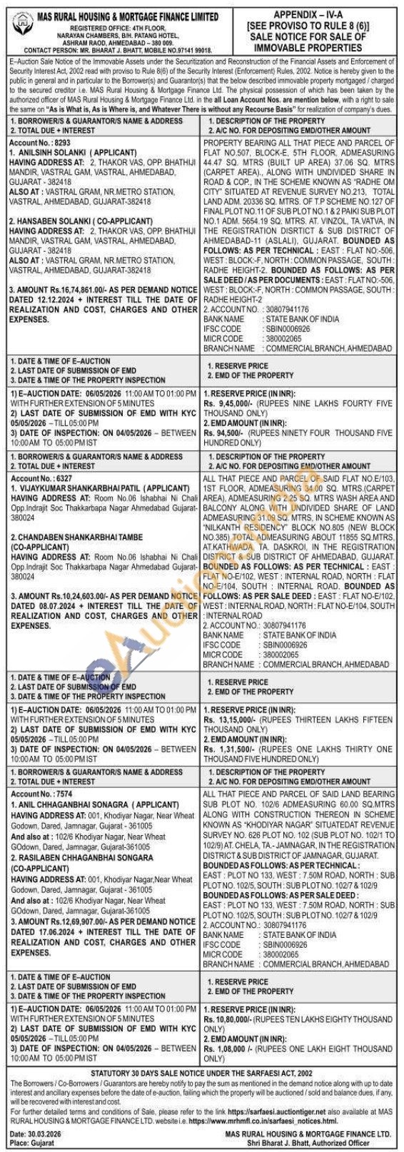 2. ALL THAT PIECE AND PARCEL OF SAID FLAT NO.E/103. 1ST FLOOR, ADMEASURING 34.00 SQ. MTRS.(CARPET AREA), ADMEASURING 2.25 SQ. MTRS WASH AREA AND BALCONY ALONG WITH UNDIVIDED SHARE OF LAND ADMEASURING 31.09 SQ. MTRS, IN SCHEME KNOWN AS 'NILKANTH RESIDENCY BLOCK NO.805 (NEW BLOCK NO.385) TOTAL ADMEASURING ABOUT 11855 SQ.MTRS, AT.KATHWADA, TA. DASKROI, IN THE REGISTRATION DISTRICT & SUB DISTRICT OF AHMEDABAD, GUJARAT. BOUNDED AS FOLLOWS: AS PER TECHNICAL: EAST: FLAT NO-E/102, WEST: INTERNAL ROAD, NORTH: FLAT NO-E/104, SOUTH INTERNAL ROAD. BOUNDED AS FOLLOWS: AS PER SALE DEED: EAST: FLAT NO-E/102, WEST: INTERNAL ROAD, NORTH: FLAT NO-E/104, SOUTH INTERNAL ROAD