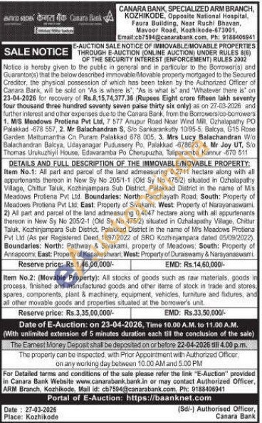DETAILS AND FULL DESCRIPTION OF THE IMMOVABLE/MOVABLE PROPERTY: Item No.2: (Movable Property): All stocks of goods such as raw materials, goods in process, finished and manufactured goods and other items of stock in trade and stores spares, components, plant & machinery, equipment, vehicles, furniture and fixtures, and all other movable goods and properties situated at the borrower's unit