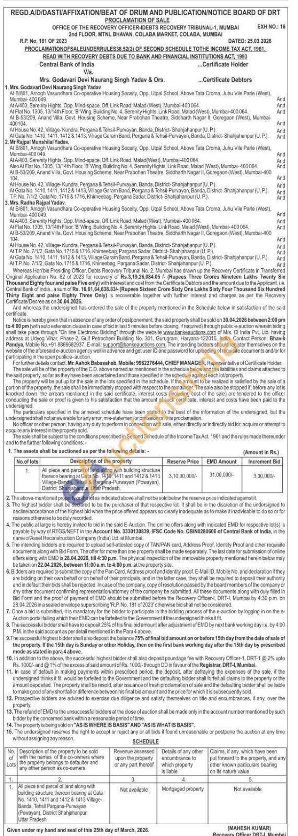 All piece and parcel of land along with building structure thereon bearing at Gata No. 1410, 1411 and 1412 & 1413 Village-Banda, Tehsil & Pargana-Purwayan (Powayan). District Shahjahanpur, Uttar Pradesh