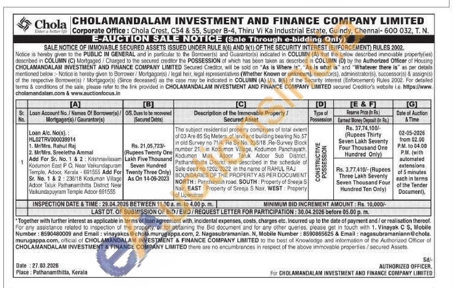The subject residential property comprises of total extent of 03 Are 85 Sq Meters of land and building bearing No.57 in old Survey no 71/4, Re Sy No. 236/18, Re-Survey Block number 21, in Kodumon Village, Kodumon Panchayath. Kodumon Muri, Adoor Taluk Adoor Sub District Pathanmthitta District and described in the schedule of Sale deed no 1202/2022 in the name of RAHUL RAJ BOUNDARIES OF THE PROPERTY AS PER DOCUMENT NORTH: Panchayath road, SOUTH: Property of Sreeja S Nair, EAST: Property of Sreeja S Nair, WEST: Property of Upendran