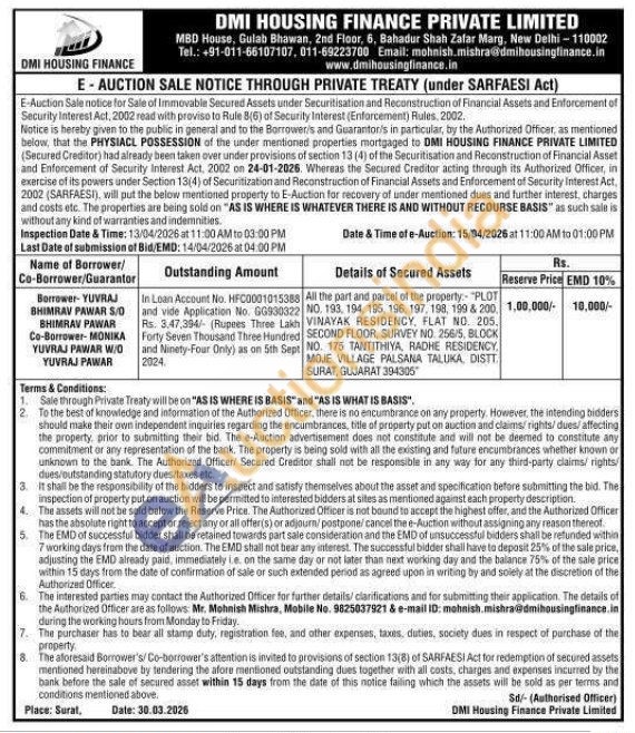 All the part and parcel of the property:- "PLOT NO. 193, 194, 195, 196, 197, 198, 199 & 200 VINAYAK RESIDENCY, FLAT NO. 205, SECOND FLOOR, SURVEY NO. 256/5, BLOCK NO. 175 TANTITHIYA, RADHE RESIDENCY, MOJE VILLAGE PALSANA TALUKA DISTT SURAT, GUJARAT 394305