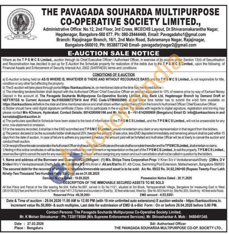All that Piece and Parcel of the Site bearing No.934, Katha No.687. carved in Sy No. 11/21, situated at 3rd Block, Yerrappanahalli Village, Bangalore for measuring East to West ( 36.6+30.6)/2 feet and North to South 42 feet for total 1411.2 Sq feet and bounded on East by: 30 feet wide road, West by: Site No. 933,North by: Site No.935, South by: 40 feet wide Road.