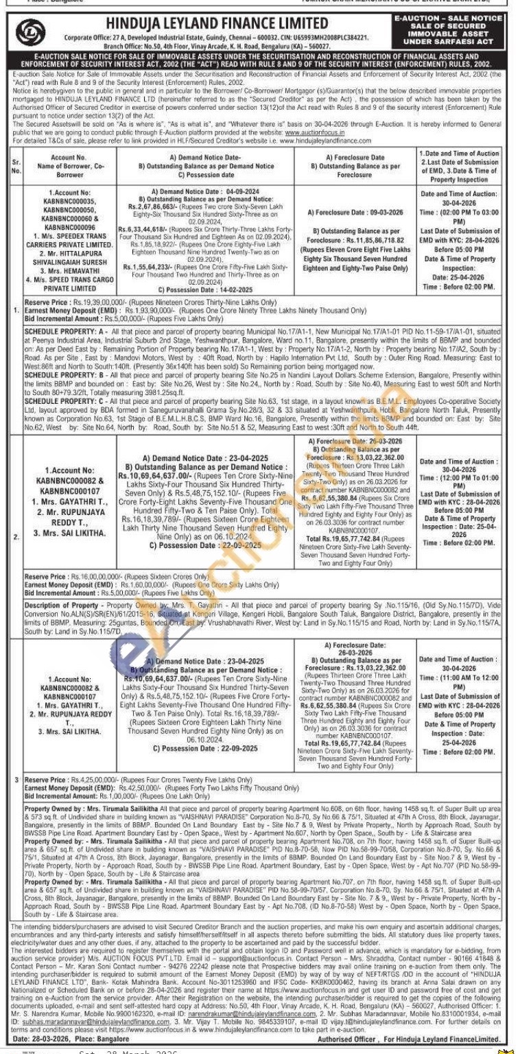 SCHEDULE PROPERTY: A All that piece and parcel of property bearing Municipal No.17/A1-1, New Municipal No. 17/A1-01 PID No. 11-59-17/A1-01, situated at Peenya Industrial Area, Industrial Suburb 2nd Stage, Yeshwanthpur, Bangalore, Ward no.11, Bangalore, presently within the limits of BBMP and bounded on: As per Deed East by: Remaining Portion of Property bearing No. 17/A1-1, West by: Property No.17/A1-2, North by: Property bearing No. 17/A2, South by: Road. As per Site, East by: Mandovi Motors, West by: 40ft Road, North by: Hapilo Internation Pvt Ltd, South by: Outer Ring Road. Measuring: East to West:86ft and North to South:140ft. (Presently 36x140ft has been sold) So Remaining portion being mortgaged now.